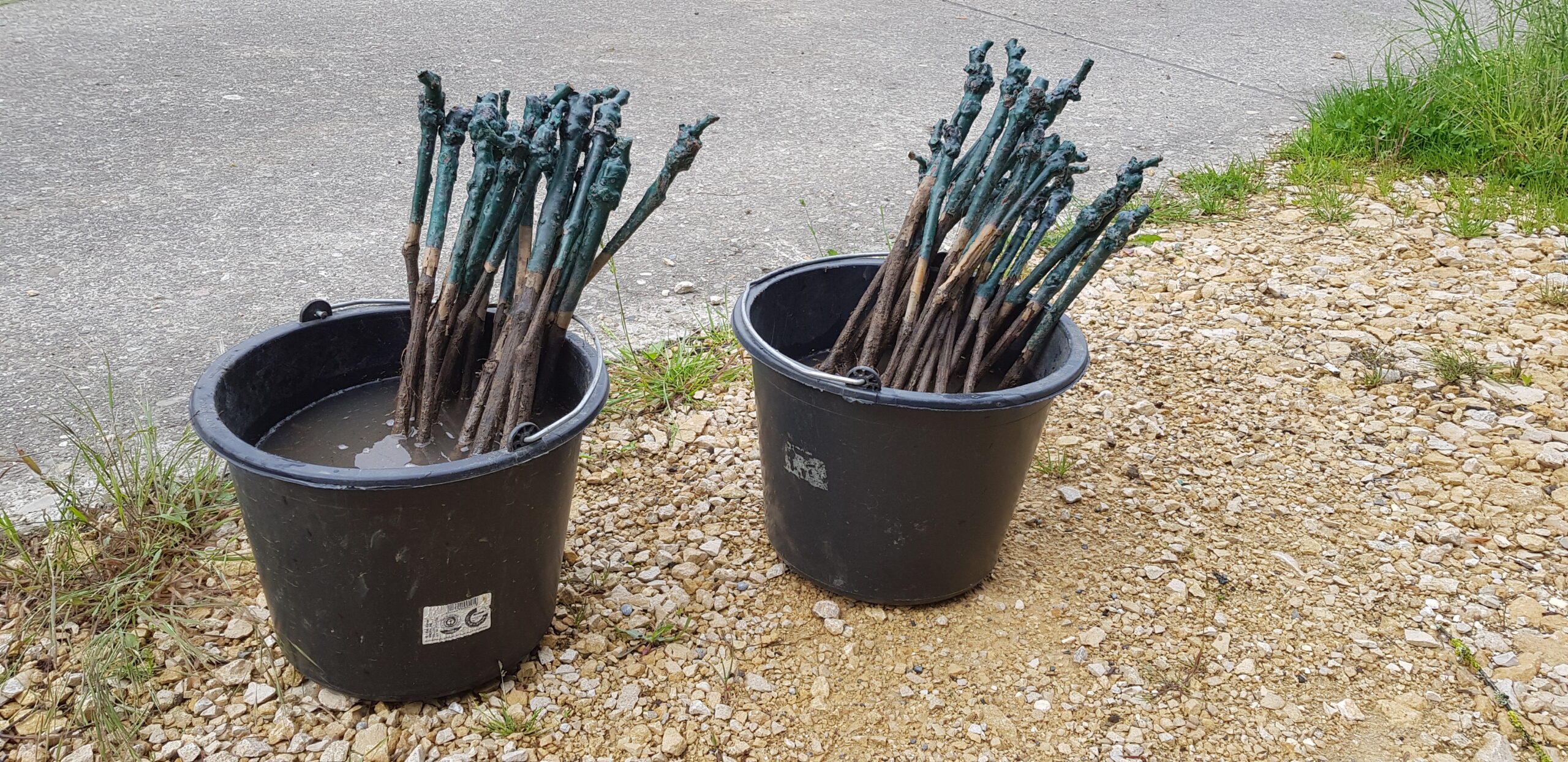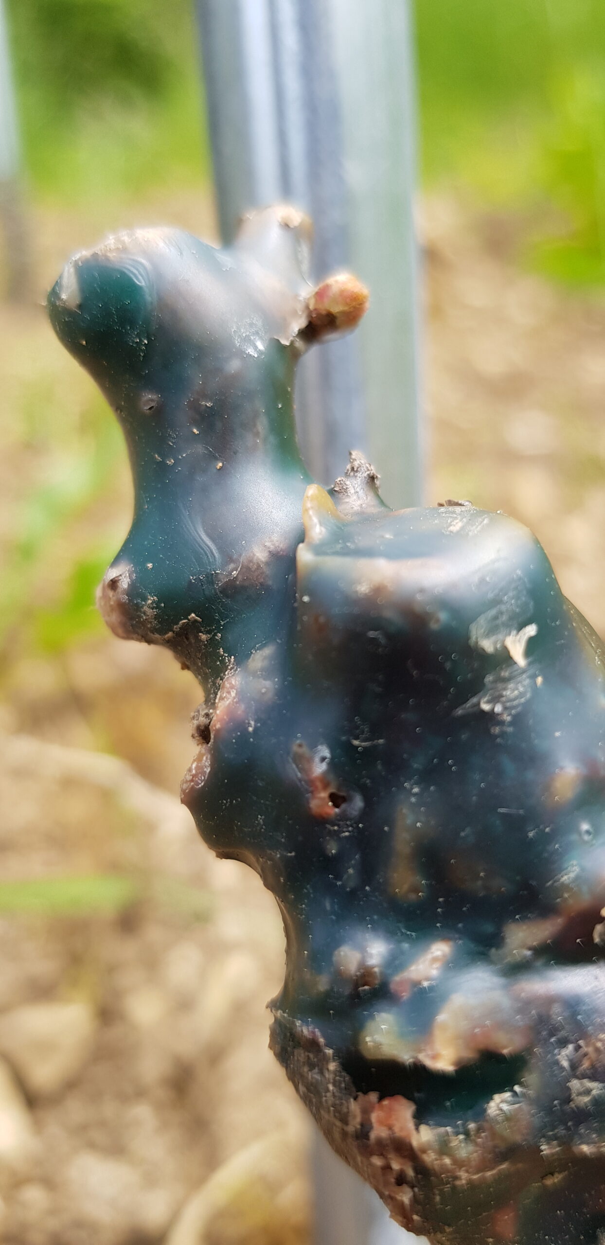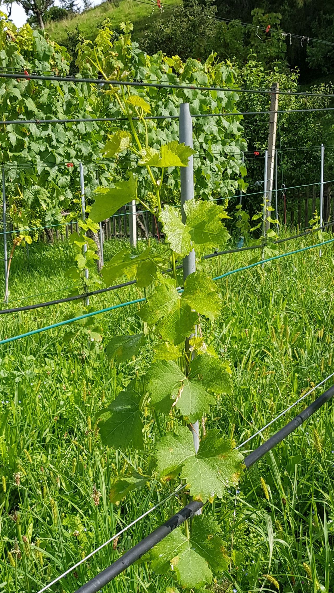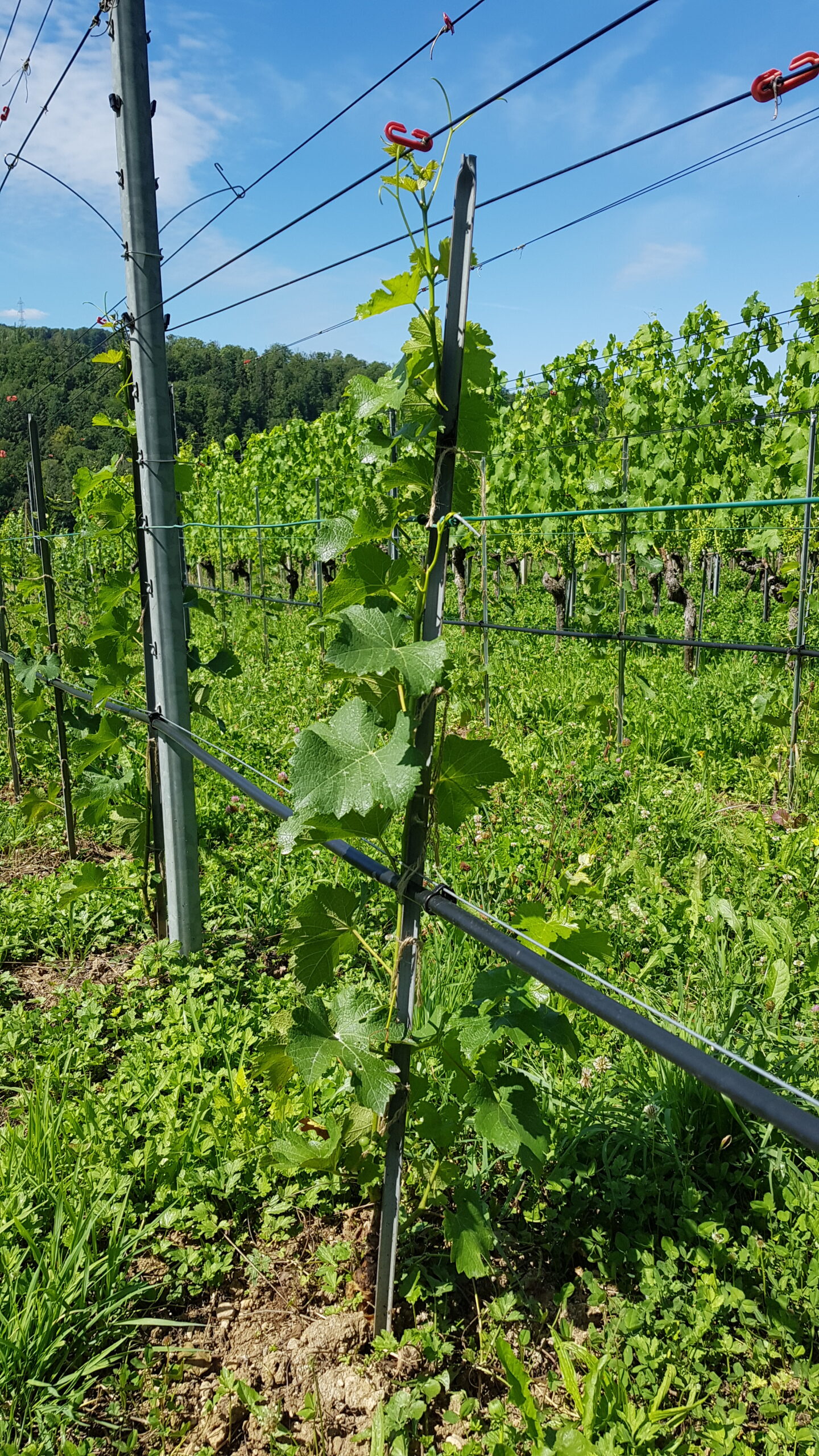 GalerieMain Album » Tagebuch eines neuen Rebbergs 7.4.2021 Der Boden wird tief gelockert um den jungen Reben einen guten Start zu ermöglichen. 20.4.2021 An diesen Rebstickeln werden die jungen Reben hoch gezogen. 11.5.2021 - Die Rebensetzlinge sind bereit, in ihren zukünftigen Lebensraum eingebracht zu werden. 12.5.2021 Vor dem einpflanzen werden die Rebensetzlinge nochmals gründlich gewässert. 12.5.2021 Die Jungreben sind gepflanzt. Jetzt braucht es genug Wärme und Wasser, damit sie zügig wachsen können. 24.5.2021 - Die Knospen beginnen zu treiben 31.5.2021 - Die ersten Blätter entfalten sich 9.6.221 -...10 Tage später 22.6.2021 - sobald einige Blätter geöffnet sind beginnt ein zügiges Wachstum 26.6.2021 Ein gut gestellter, kräftiger Trieb wird am Stickel angebunden, die übrigen werden entfernt 30.7.2021 Die kräftig wachsenden Jungreben erreichen den Bindedraht. 19.8.2021... und bald darauf auch den ersten Heftdraht 23.9.2021 Jetzt im Herbst ist es wichtig, dass die grünen Triebe gut verholzen. Nur so überstehen Sie den kommenden Winter. 22.4.22 - Im Winter sind die jungen Reben nochmals ganz zurück geschnitten worden. Wenn es warm wird treiben die Knospen wieder aus. 9.5.22 ... sobald es wärmer wird setzt ein rasches Wachstum ein 7.7.2022 - Wenn alles gut geht, wird dieser kräftige Trieb den Stamm der neuen Reben bilden. 12.9.22 - Die Jungreben sind jetzt am obersten Draht angekommen. Hier kann im kommenden Frühjahr der Stamm angeschnitten werden.